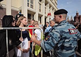 Сотрудники правоохранительных органов на Манежной площади перед началом пикета в поддержку…