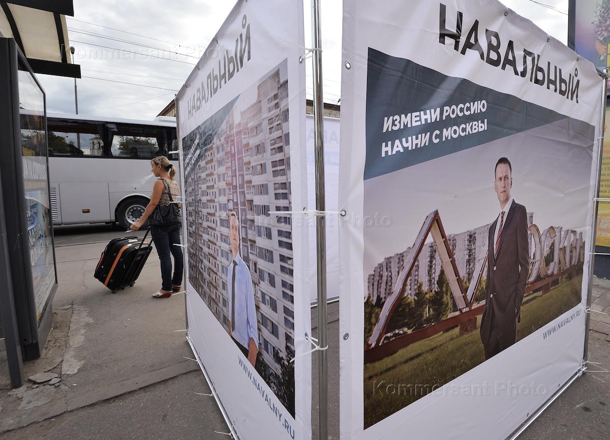Пикет в поддержку кандидата на пост мэра Москвы Алексея Навального. Участники пикета установили…