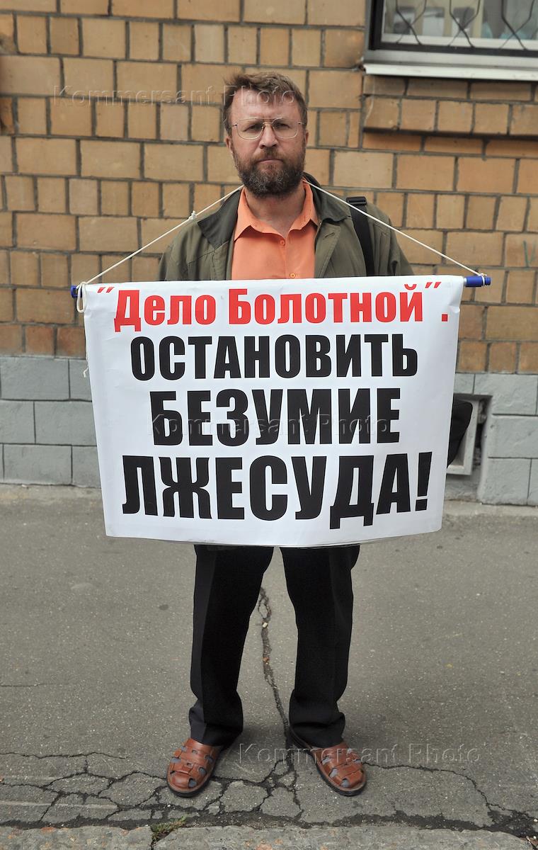 Участник пикета в защиту обвиняемого по делу о массовых беспорядках на Болотной площади 6 мая 2012…