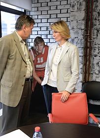 Исполняющая обязанности президента Российской федерации баскетбола (РФБ) Юлия Аникеева (справа) во…