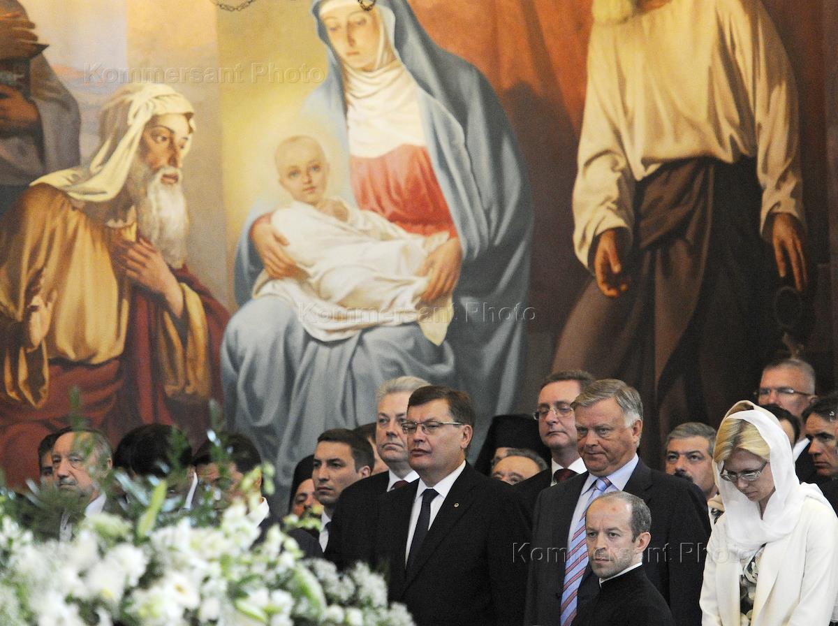 Президент ОАО "Российские железные дороги" (РЖД) Владимир Якунин (второй справа) на Божественной…