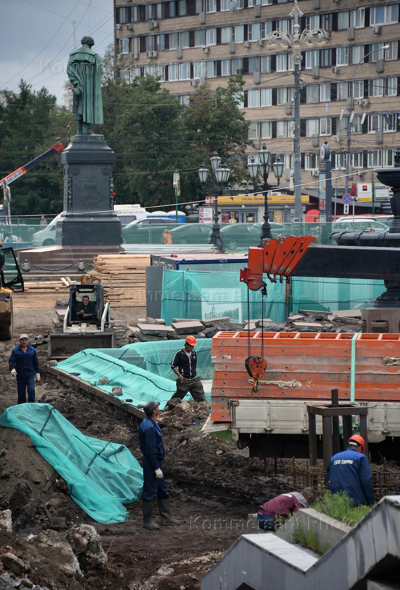 Строительная площадка реконструкции Пушкинской площади и Страстного бульвара.