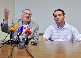 Лидер либерально-демократической партии России (ЛДПР) Владимир Жириновский (слева) и депутат…