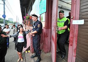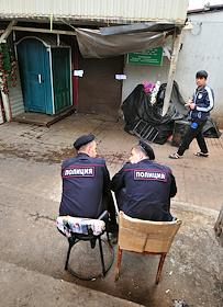 Полиция во время патрулирования сельскохозяйственного рынка "Выхино".