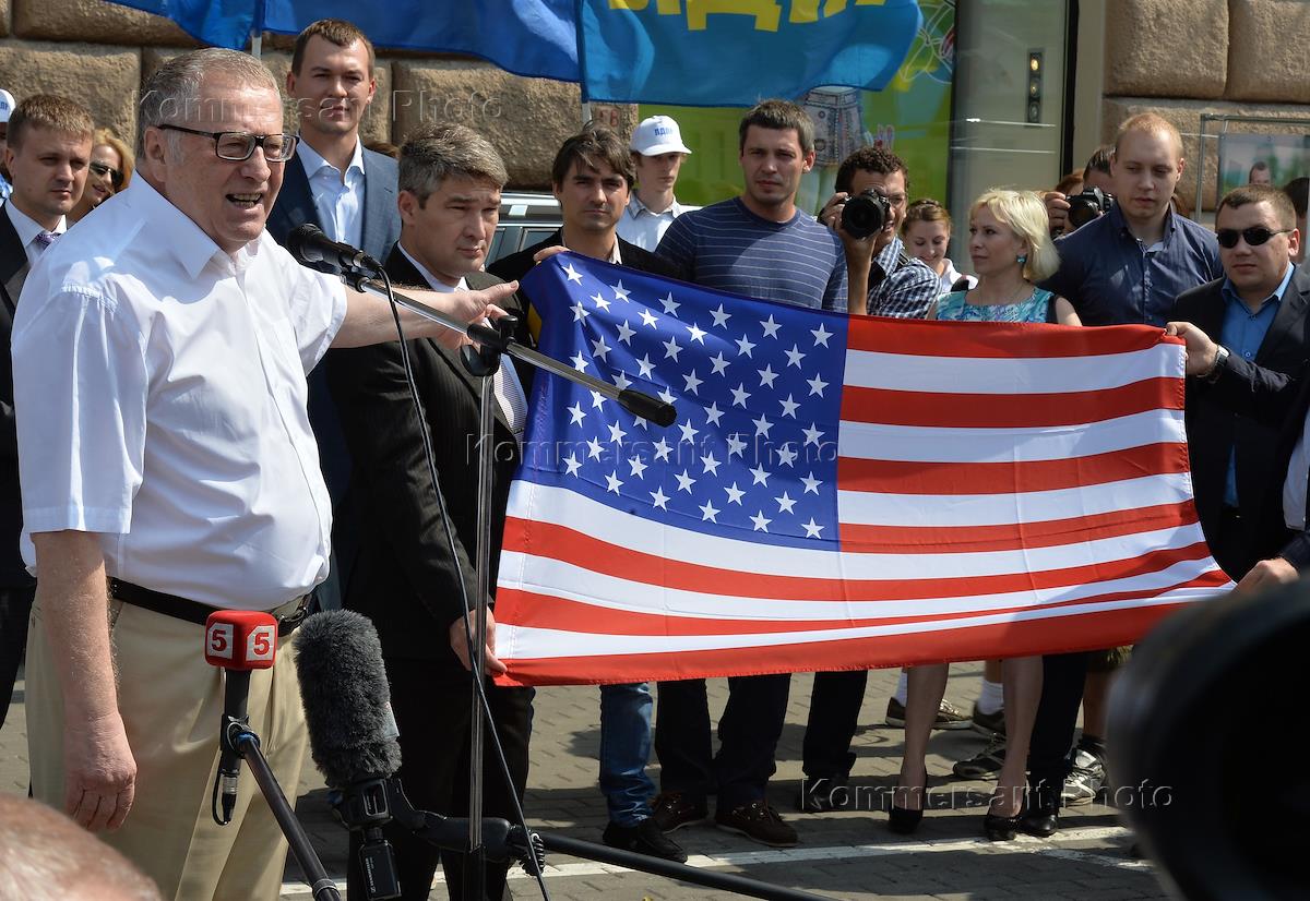 Митинг ЛДПР протеста против выходки рок-группы Bloodhound Gang у посольства США. Заместитель…