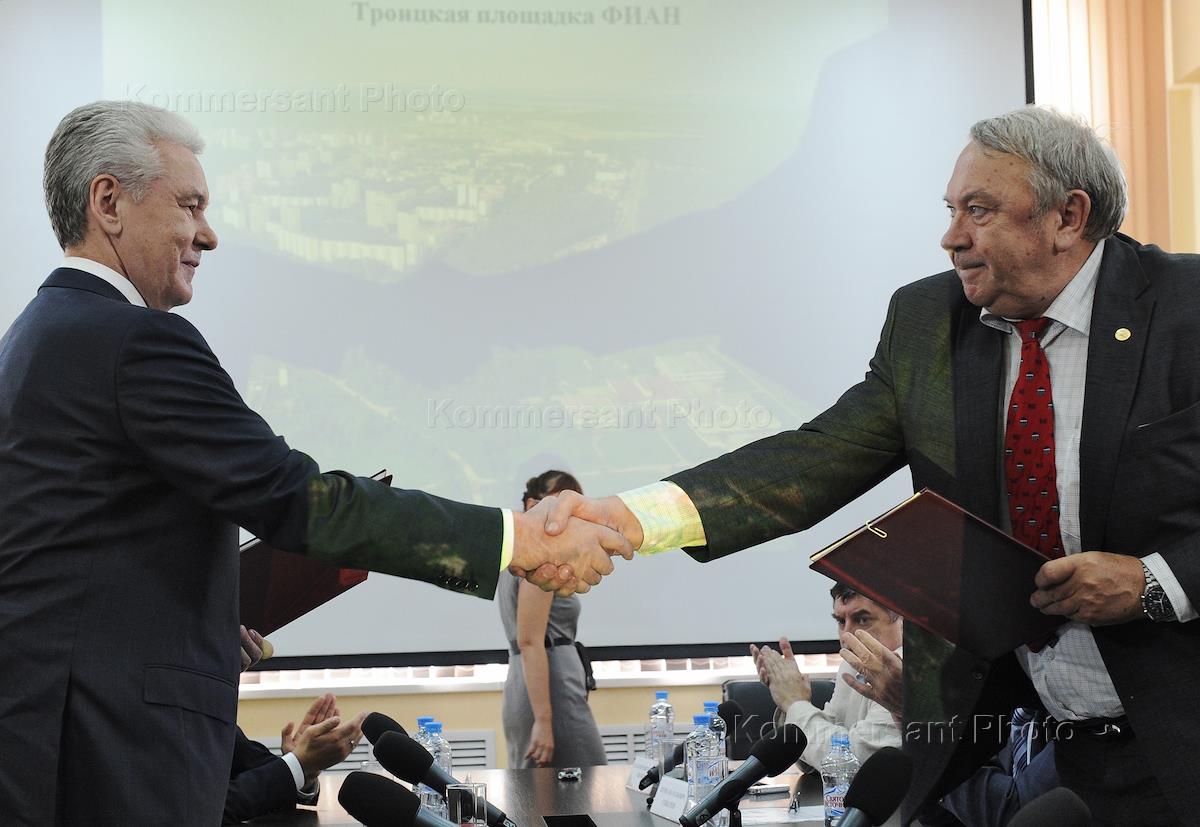 Президент РАН Владимир Фортов (слева) и исполняющий обязанности мэра Москвы Сергей Собянин (справа)…