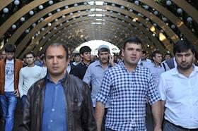 Праздник разговения Ураза-байрам. Верующие идут на молитву в павильон №2 парка "Сокольники".