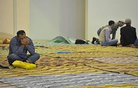 Праздник разговения Ураза-байрам. Верующие перед молитвой в павильоне №2 парка "Сокольники".