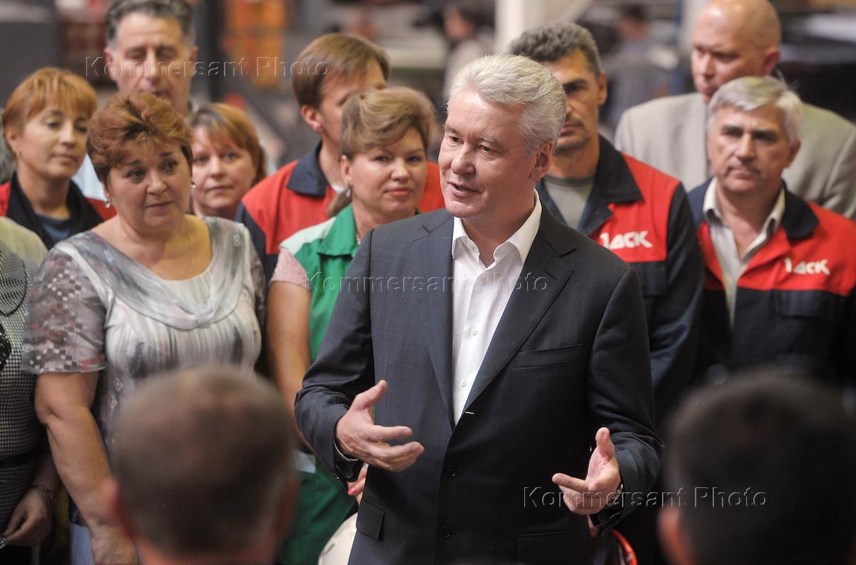 Исполняющий обязанности мэра Москвы Сергей Собянин во время посещения строительной компании…