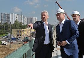 Исполняющий обязанности мэра Москвы Сергей Собянин (справа) во время посещения строительной …