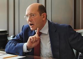 Председатель правления Государственной компании "Автодор" Сергей Кельбах во время интервью.