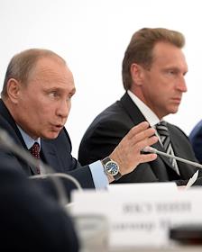 Президент России Владимир Путин (слева) и первый заместитель председателя правительства России Игорь…