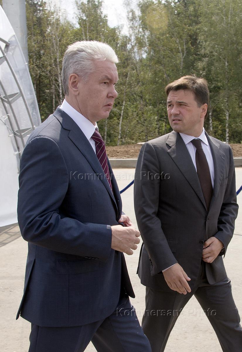 Исполняющий обязанности мэра Москвы Сергей Собянин (слева) и исполняющий обязанности губернатора…