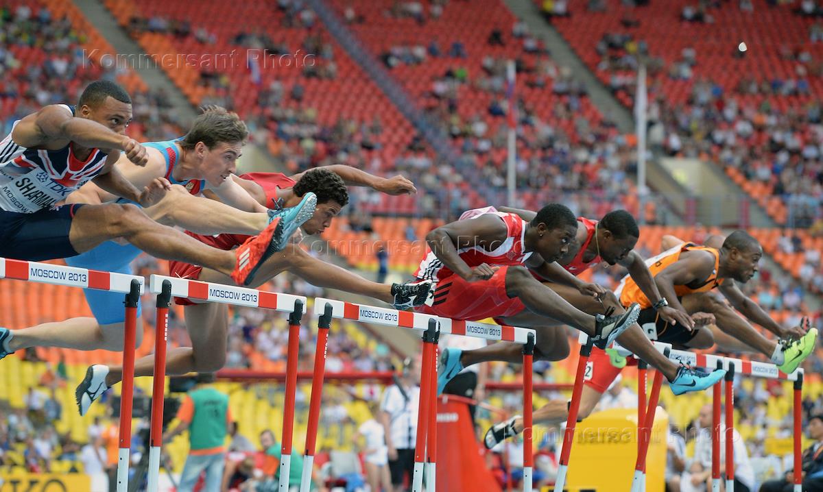 XIV чемпионат мира по легкой атлетике 2013 года. Спортсмен из Великобритании Уильям Шерман (слева) и…