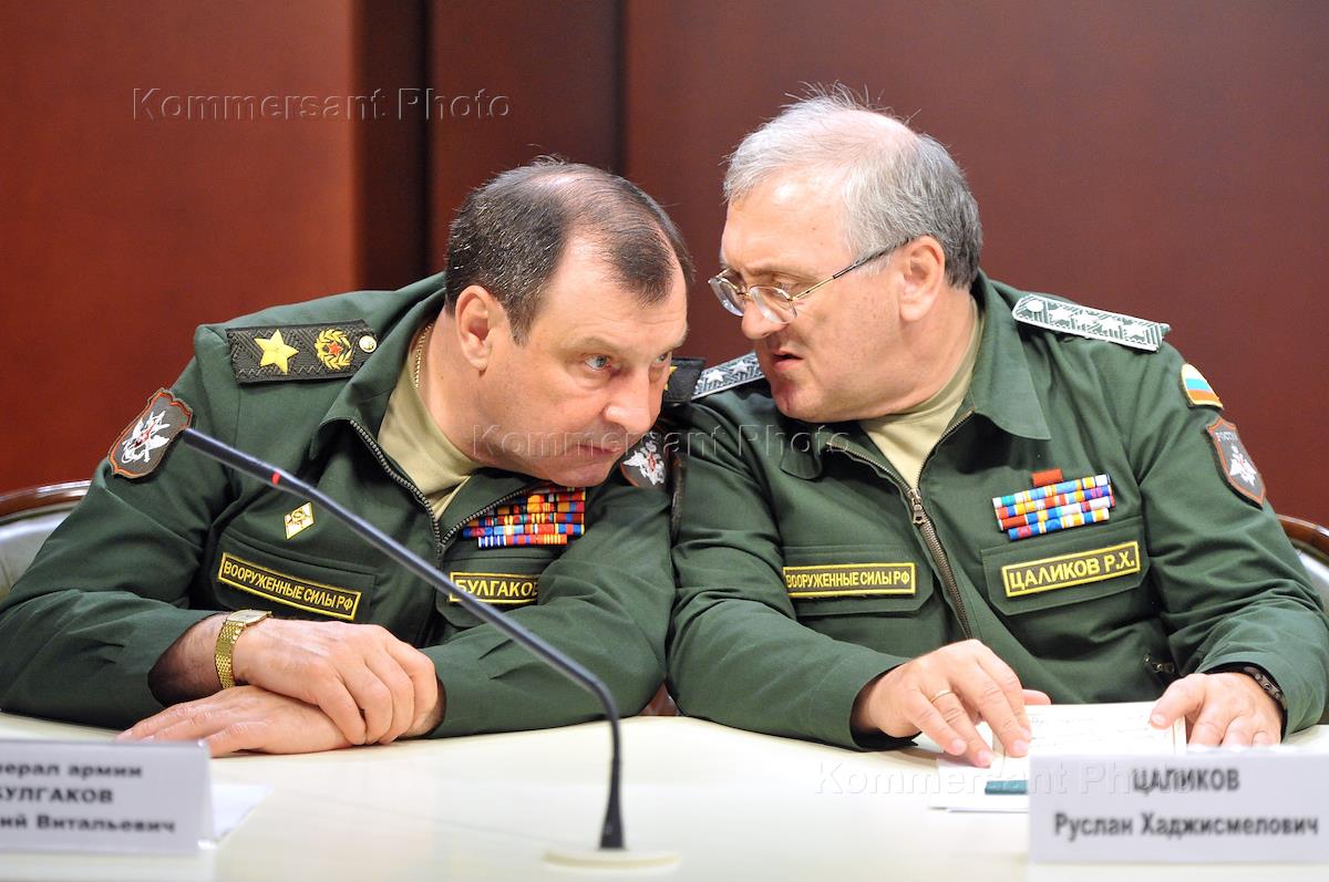 Слева направо: заместители министра обороны России, генерал армии Дмитрий Булгаков, Руслан Цаликов,…
