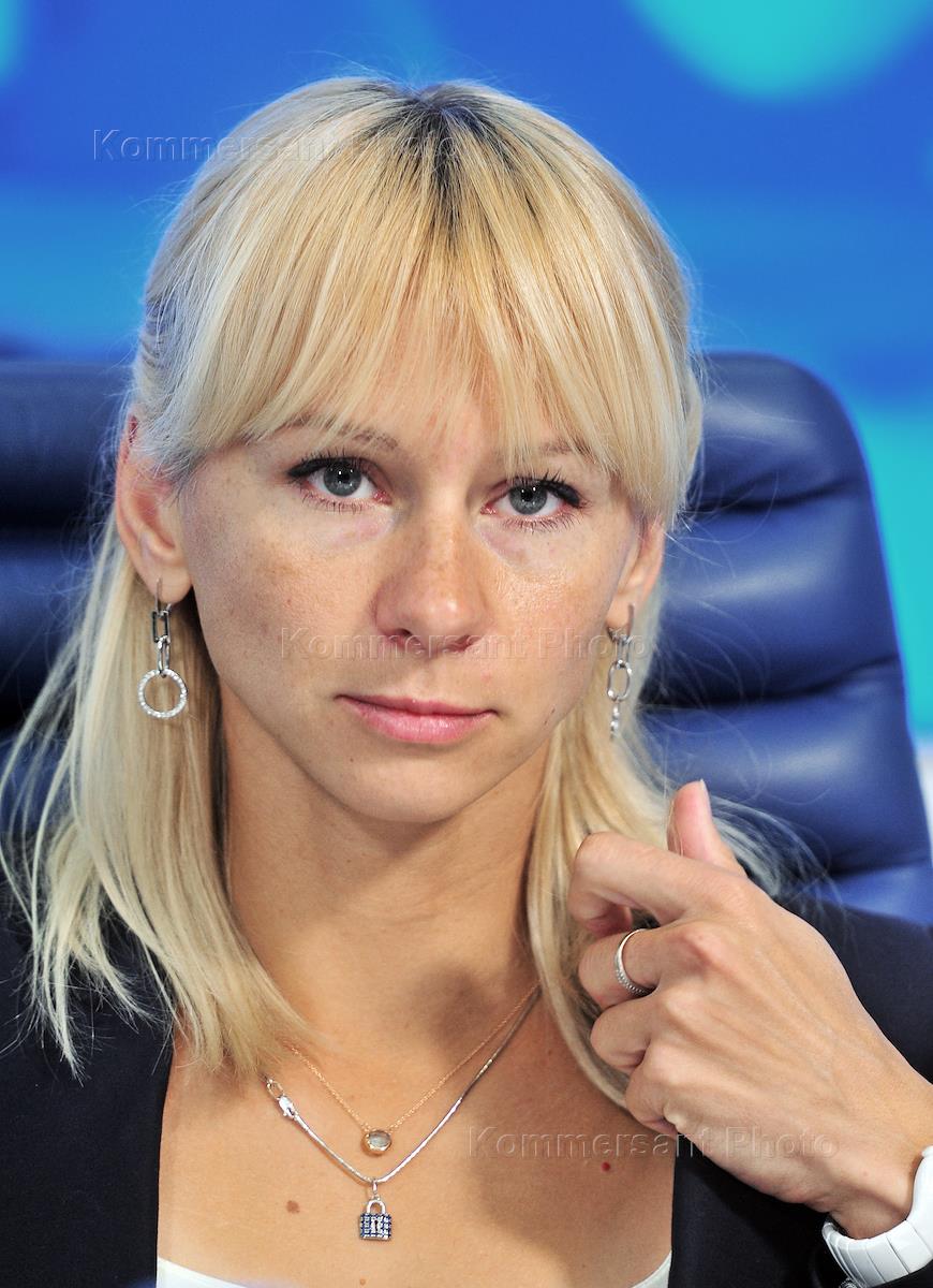 Российская спортсменка Юлия Гущина во время пресс-конференции, посвященной итогам выступления…