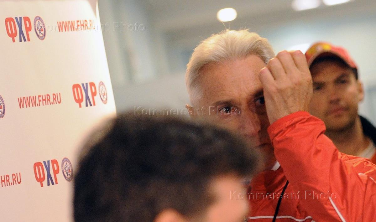 Главный тренер сборной России по хоккею Зинэтула Билялетдинов во время тренировки сборной команды…