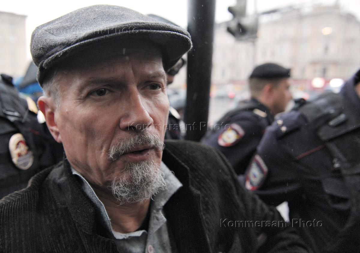 Писатель, лидер партии "Другая Россия" Эдуард Лимонов во время проведения акции "Стратегия - 31" в…