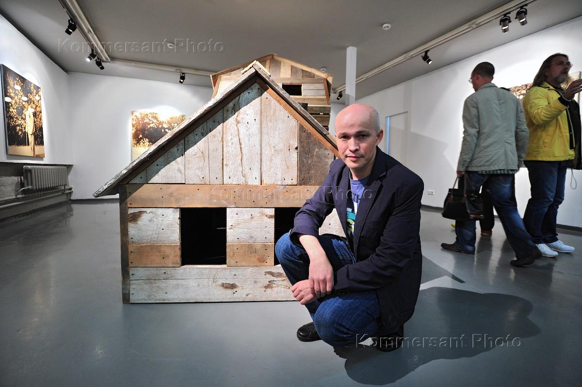 Художник-постконцептуалист Ринат Волигамси на своей выставке "Снег" в галерее на Винзаводе.
