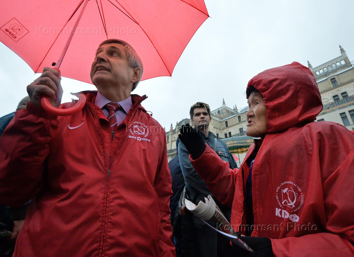 Митинг Коммунистической партии России (КПРФ) в поддержку кандидата в мэры Москвы от КПРФ Ивана…