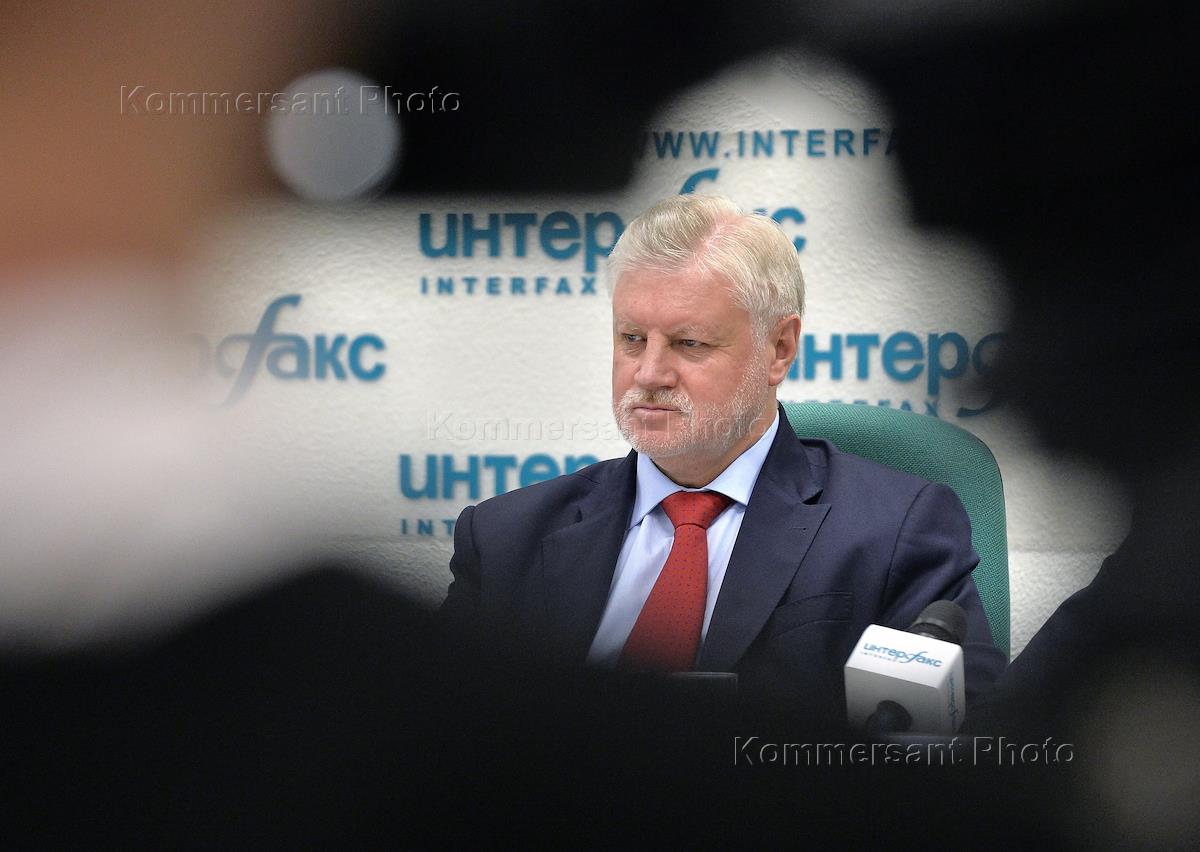 Политика П/к лидера партии «Справедливая Россия» Сергея Миронова и председателя Партии Николая Левичева, посвященная итогам Единого дня голосования в центральном офисе агентства «Интерфакс».