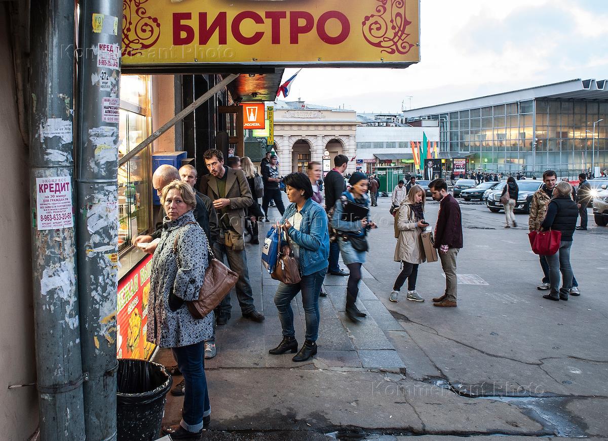 Жанровая фотография. Московский метрополитен. Люди на площади перед входом на станцию метро…