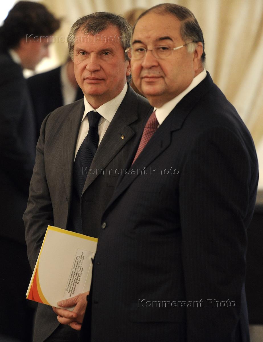 Президент, председатель правления ОАО "НК "Роснефть" Игорь Сечин (слева) и учредитель USM Holdings…