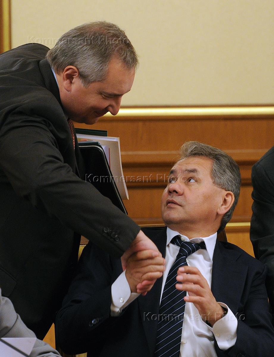 Заместитель председателя правительства России Дмитрий Рогозин (слева) и министр обороны России…