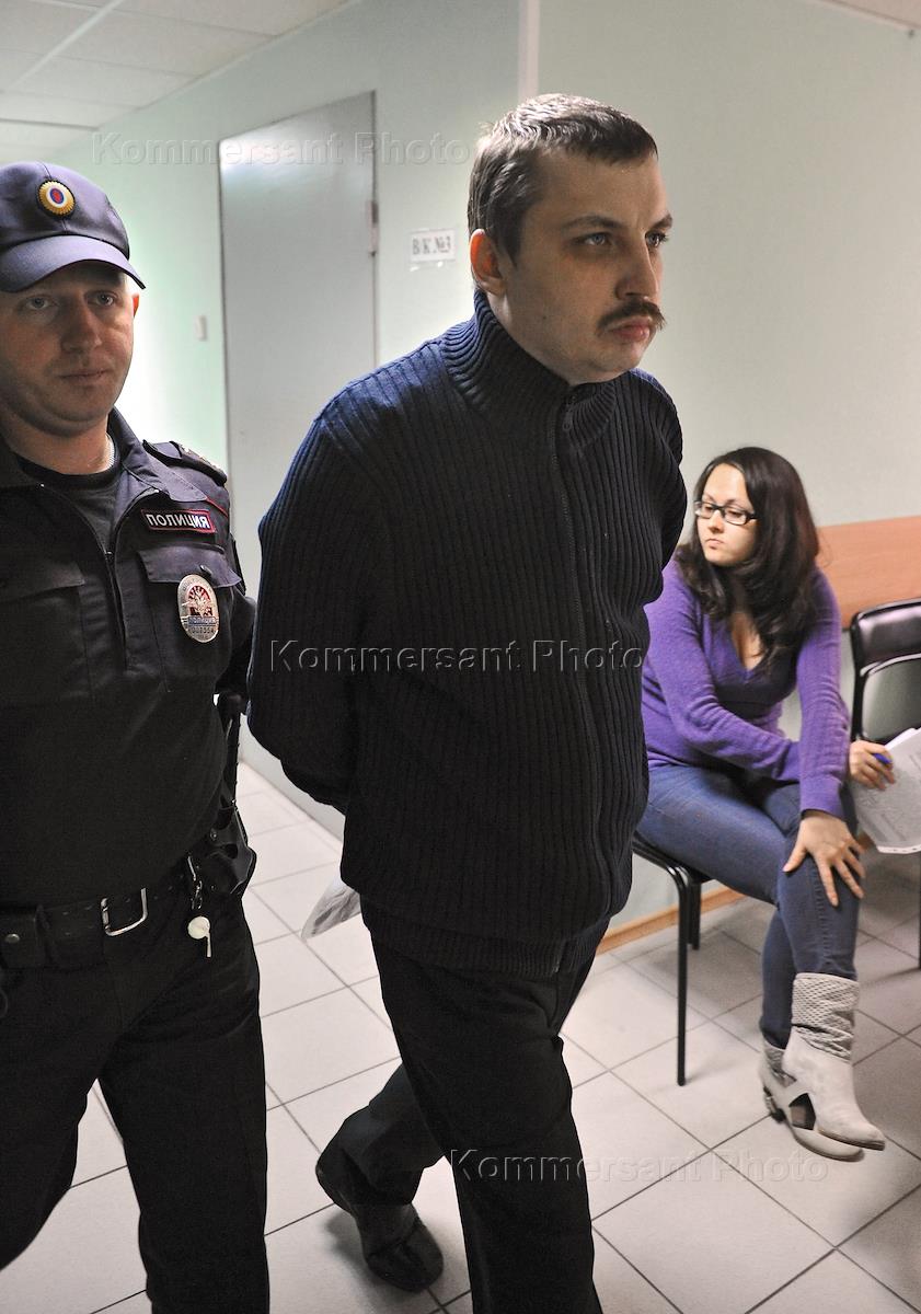 Обвиняемый в участии в массовых беспорядках на Болотной площади 6 мая 2012 года Михаил Косенко во…