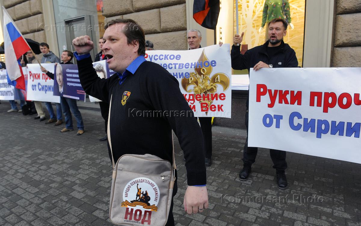 Пикет против агрессии США в отношении Сирии, напротив посольства США.