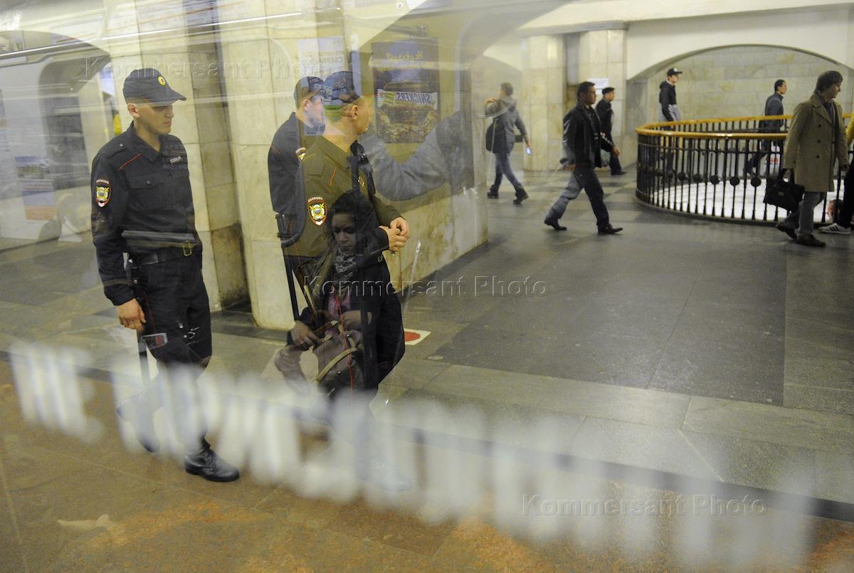 Работа полиции на Московском метрополитене.