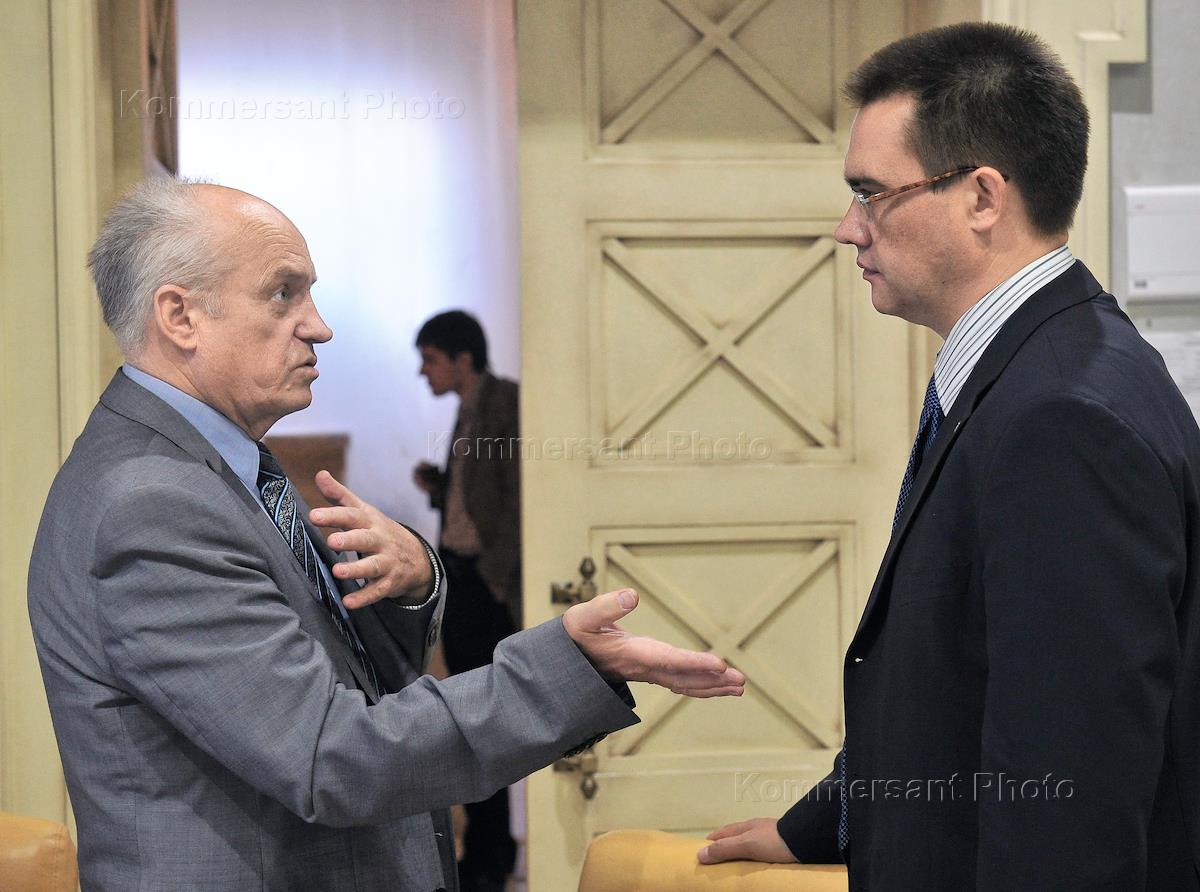 Главный научный сотрудник Института системного анализа РАН Владимир Якимец (слева) время презентации…