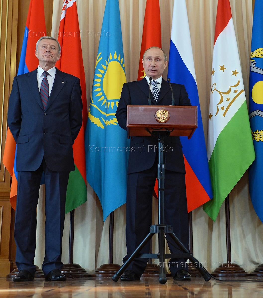 Президент России Владимир Путин (слева) и генеральный секретарь Организации договора о коллективной…