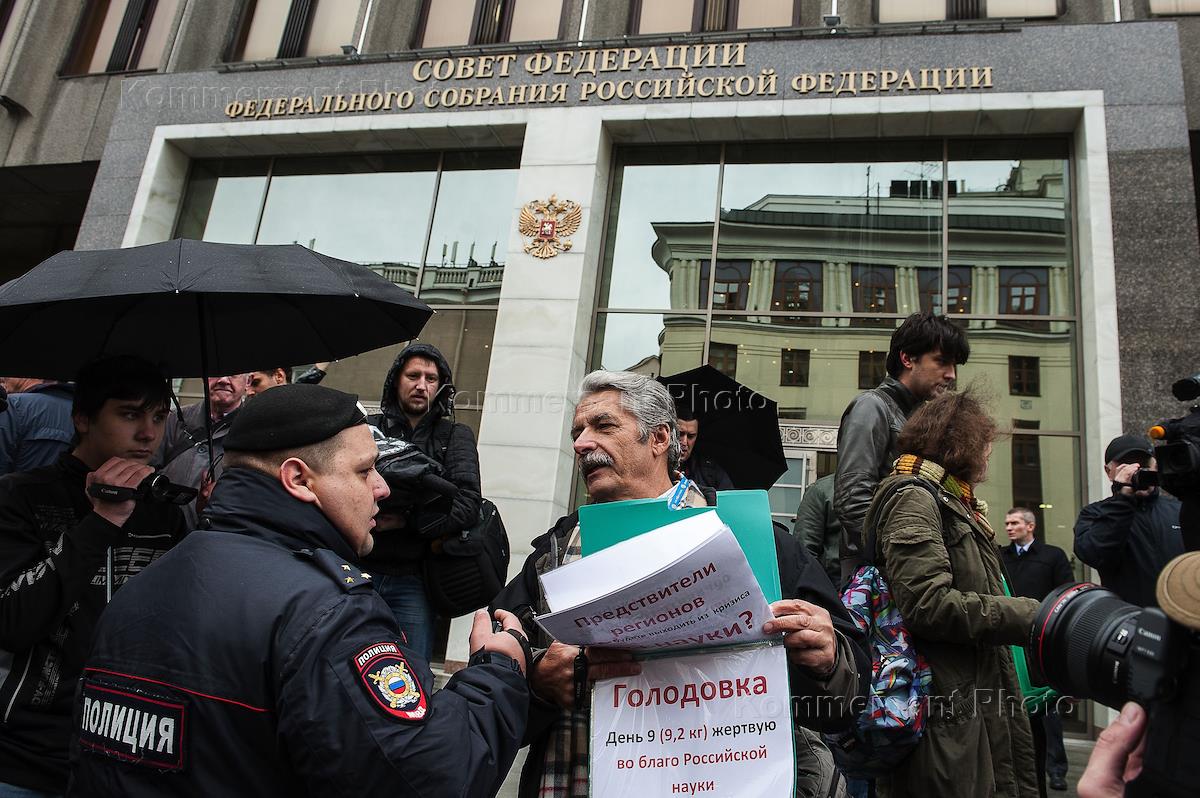 Митинг против реформы РАН у здания Совета Федерации России.