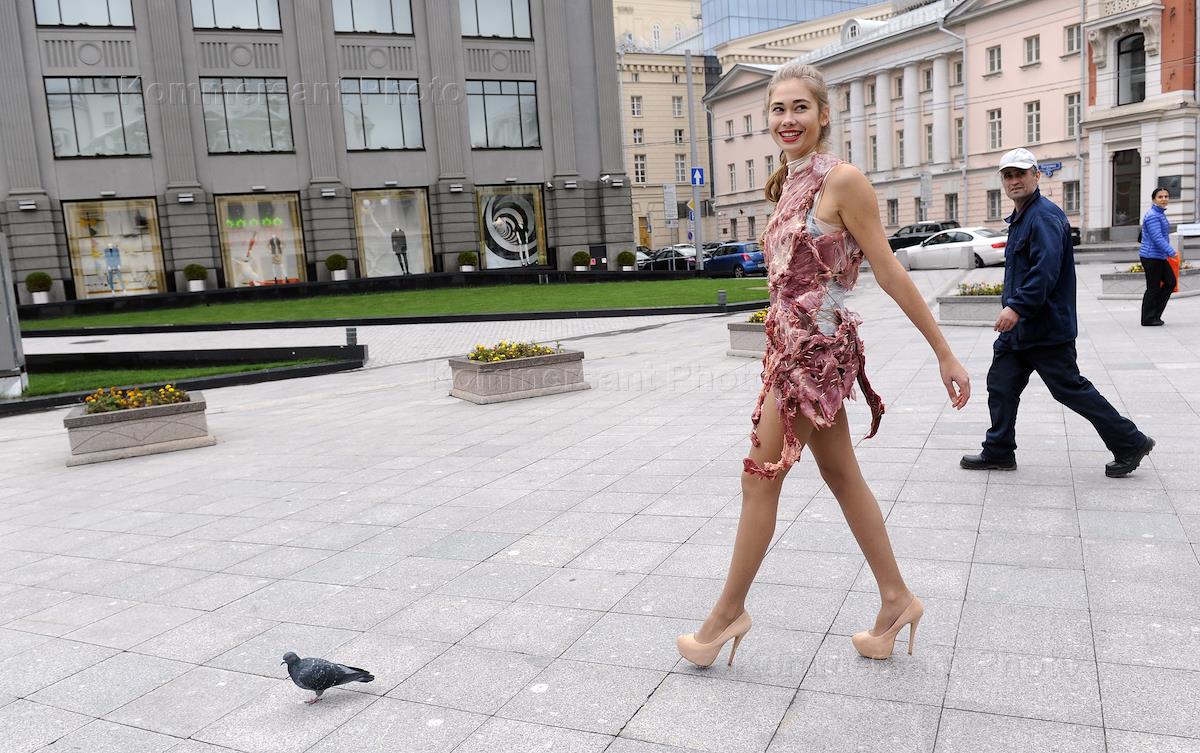 Акция активистов общественной организации "Правда о еде" напротив ЦУМа.