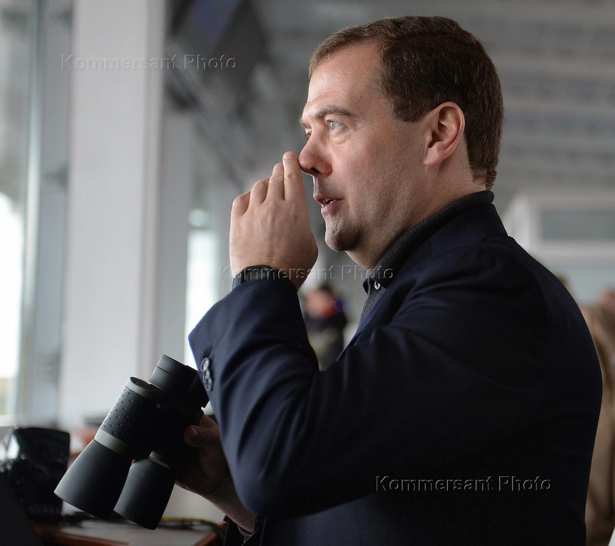 Председатель правительства России Дмитрий Медведев (в центре, справа) и генеральный директор ОАО…