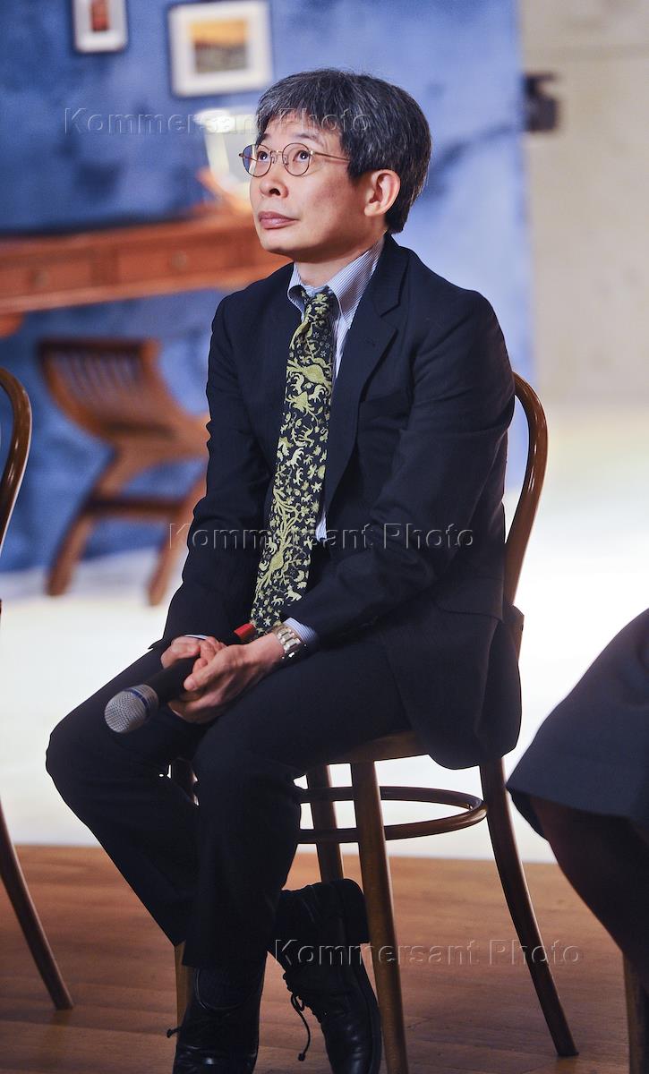 Режиссер Ориза Хирата перед показом своего спектакля "Три Сестры. Андроид-версия" по пьесе…