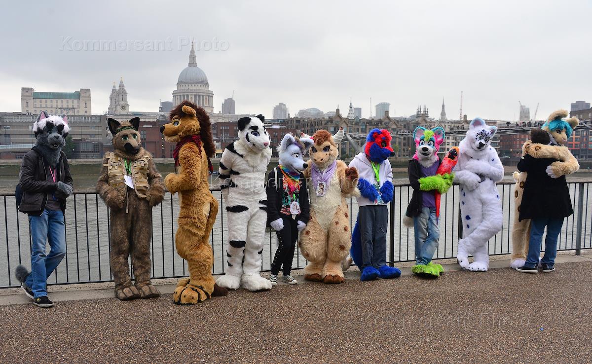 Виды Лондона. Ряженые в костюмах животных во время Thames Festival на набережной Темзы.