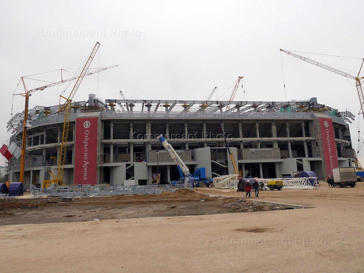 Стройплощадка стадиона футбольного клуба (ФК) "Спартак" "Открытие Арена" в Тушино.