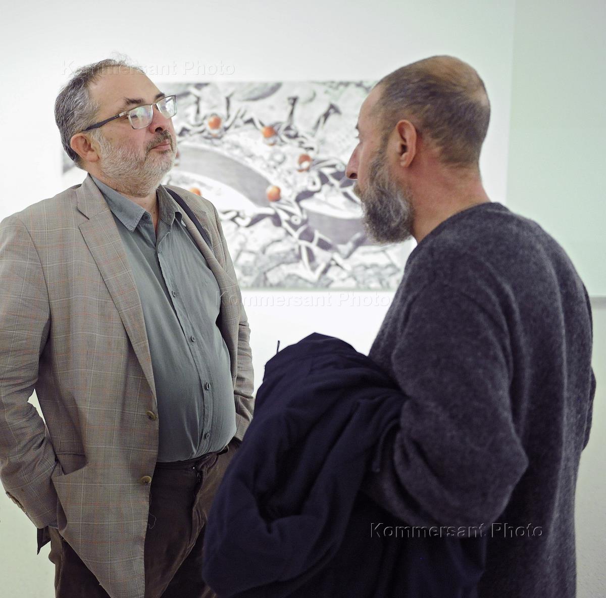 Галерист Марат Гельман (слева) на закрытом показе предаукционной выставки VLADEY. Выставка прошла в…
