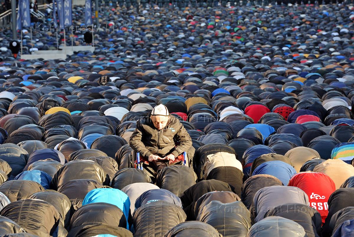 Мусульманский праздник жертвоприношения Курбан-Байрам. Праздничный намаз в Московской Соборной мечети.