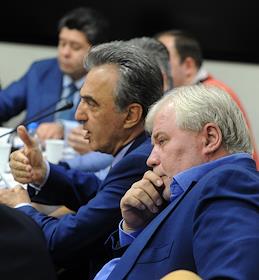 Член Общественной палаты России Асламбек Паскачев (слева) и председатель Общественного совета при…
