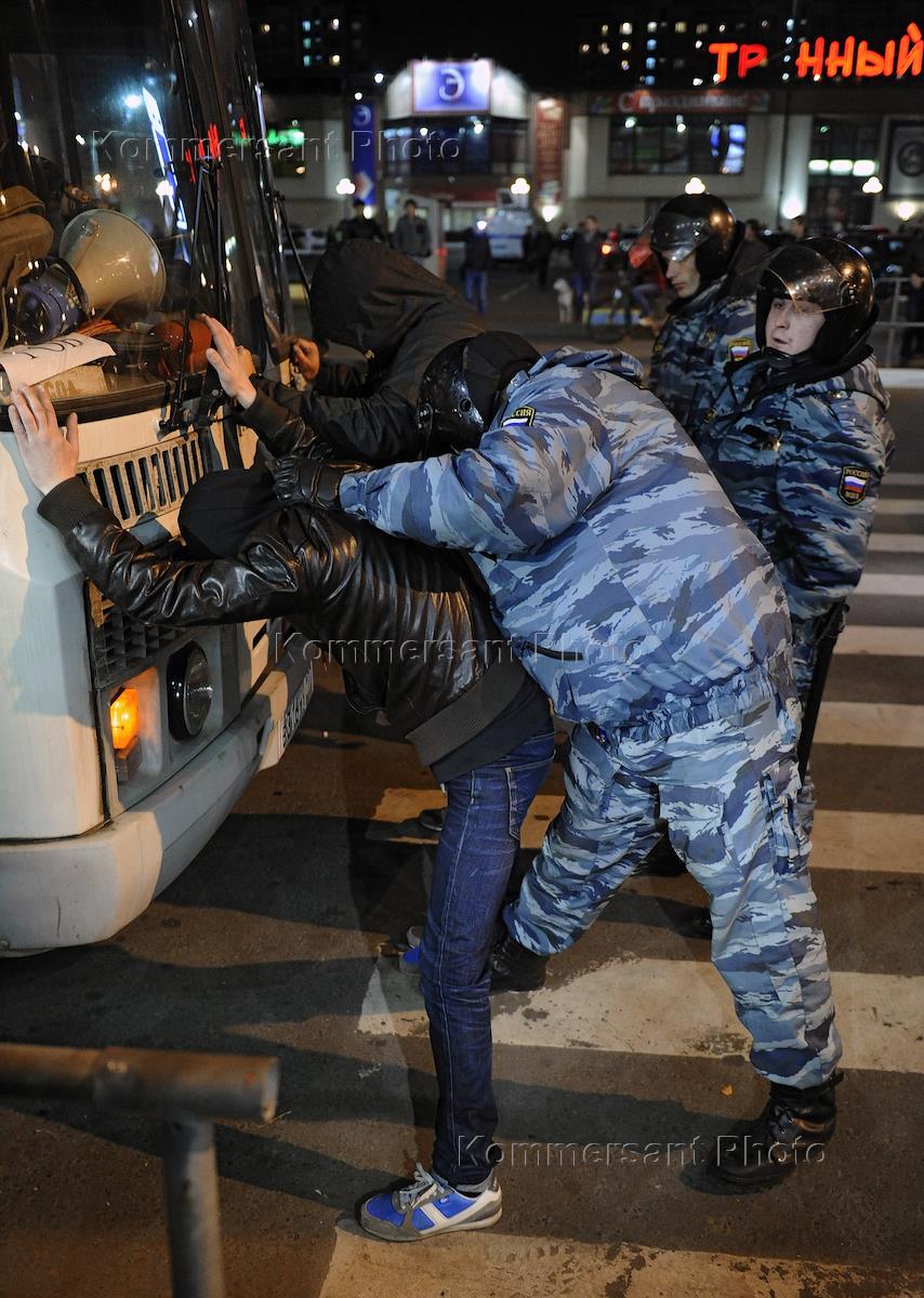 Сотрудники правоохранительных органов полиции во время задержания участников акции "Наш ответ…
