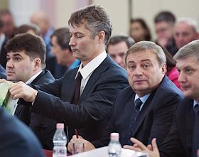 Глава Екатеринбурга Евгений Ройзман (слева) на обучающем семинаре для мэров городов страны,…
