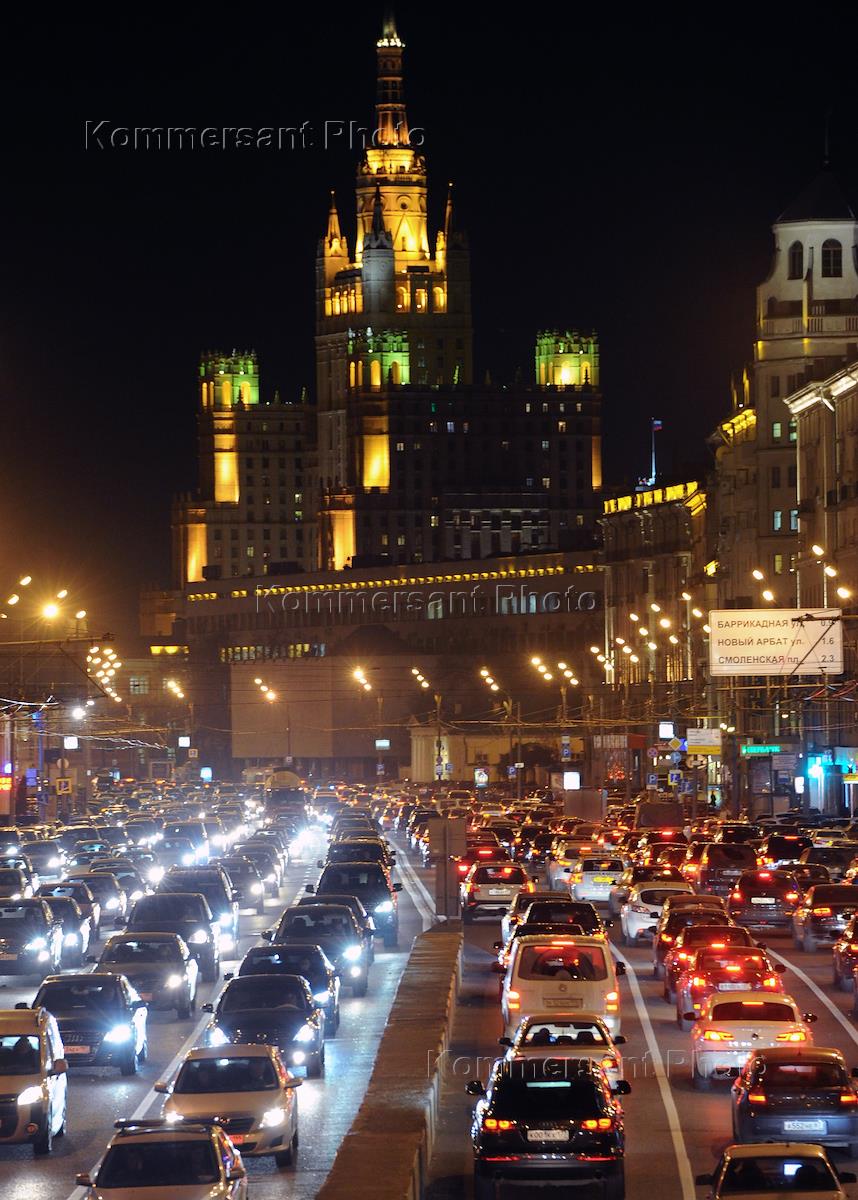 Виды Москвы. Дорожное движение на Садовом кольце.