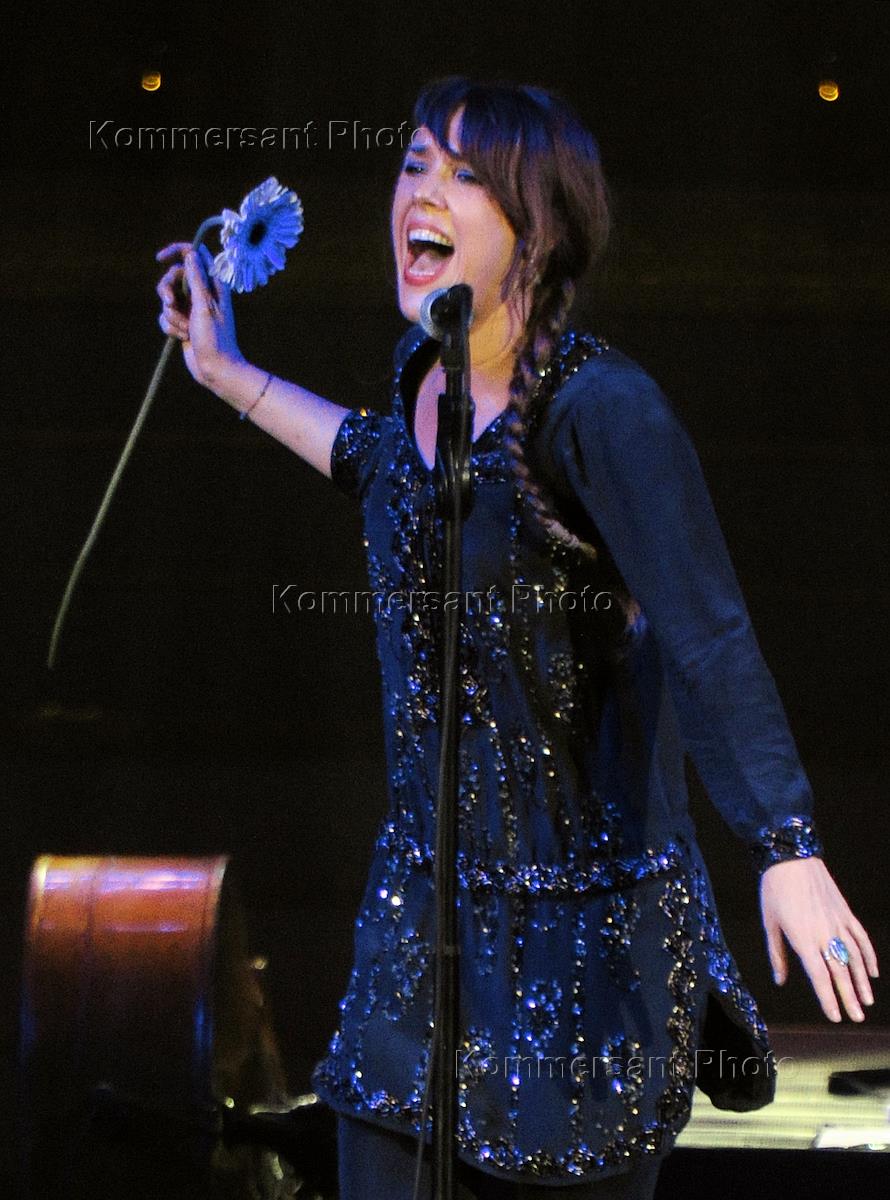 Певица Изабель Жеффруа (Zaz) (Франция) (справа) во время выступления в Crocus City Hall.