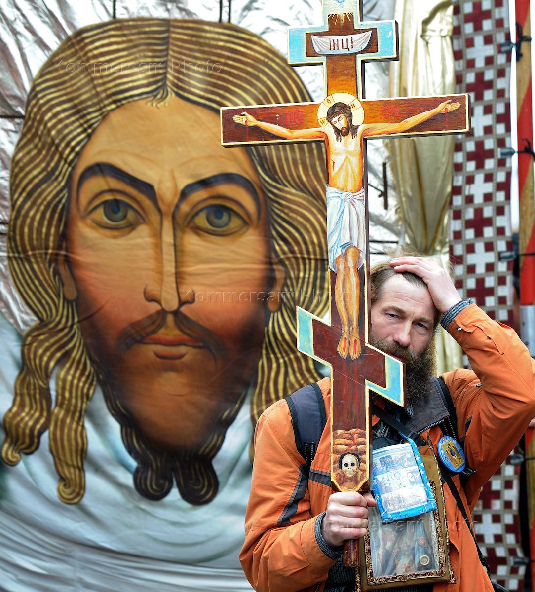Участник "Царского Русского Марша" в честь 400-летия царственного Дома Романовых во время шествия от…