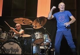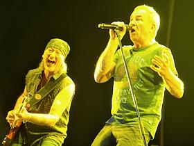 Участники группы Deep Purple Иэн Андерсон Пэйс (слева) и Иэн Гиллан (справа) во время концерта…