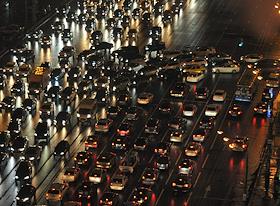Виды вечерней Москвы. Автомобильные пробки на Садовом кольце.