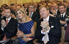 Посещение королем Нидерландов Виллемом-Александром с супругой королевой Максимой концерта оркестра "Консертгебау" под управлением дирижера Мариса Янсонса, в большом зале консерватории.
